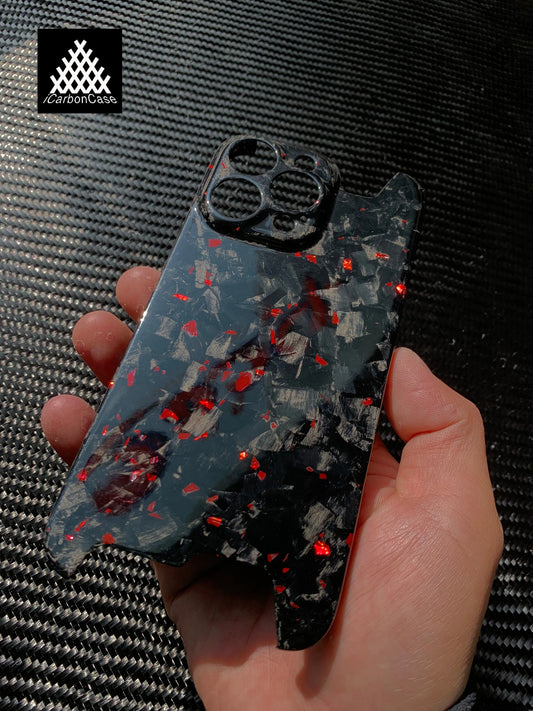 Red Large Flake Forged Carbon Fiber Case iPhone Without Magsafe